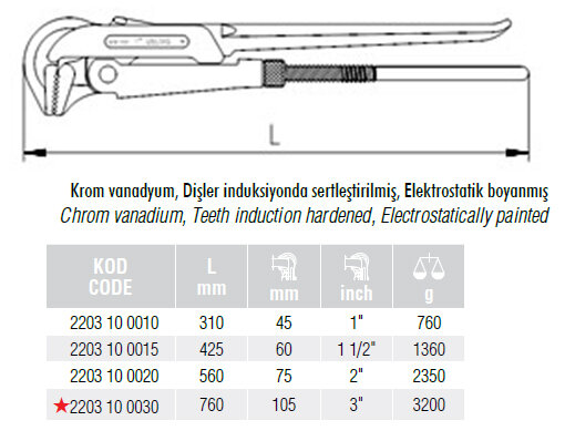 -Krom vanadyum -Dişler indüksiyonda sertleştirilmiştir -Elektrostatik boyalıdır -