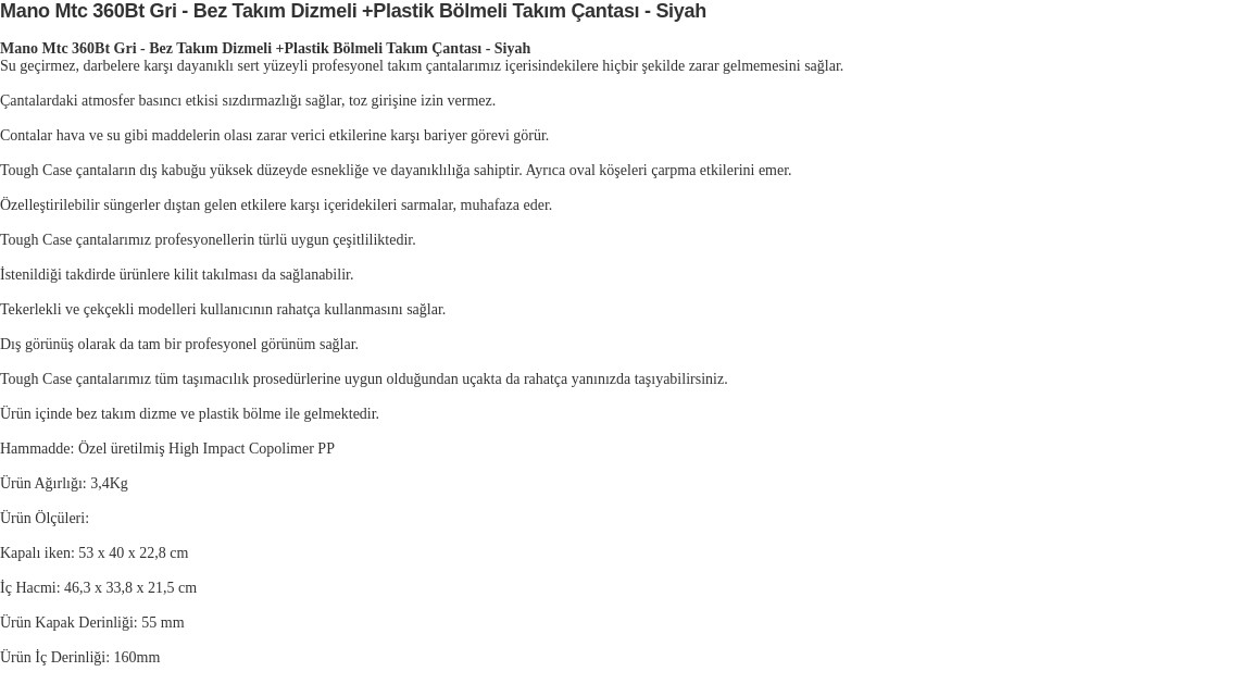 Mtc 360Bt Gri - Bez Takım Dizmeli + Plastik Bölmeli Takım Çantası - Siyah
