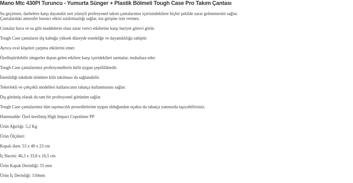 Mtc 430Pl Turuncu - Yumurta Sünger + Plastik Bölmeli Tough Case Pro Takım Çantası