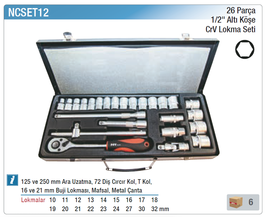 NCSET12 26 Parça 1/2’’ Lokma Seti