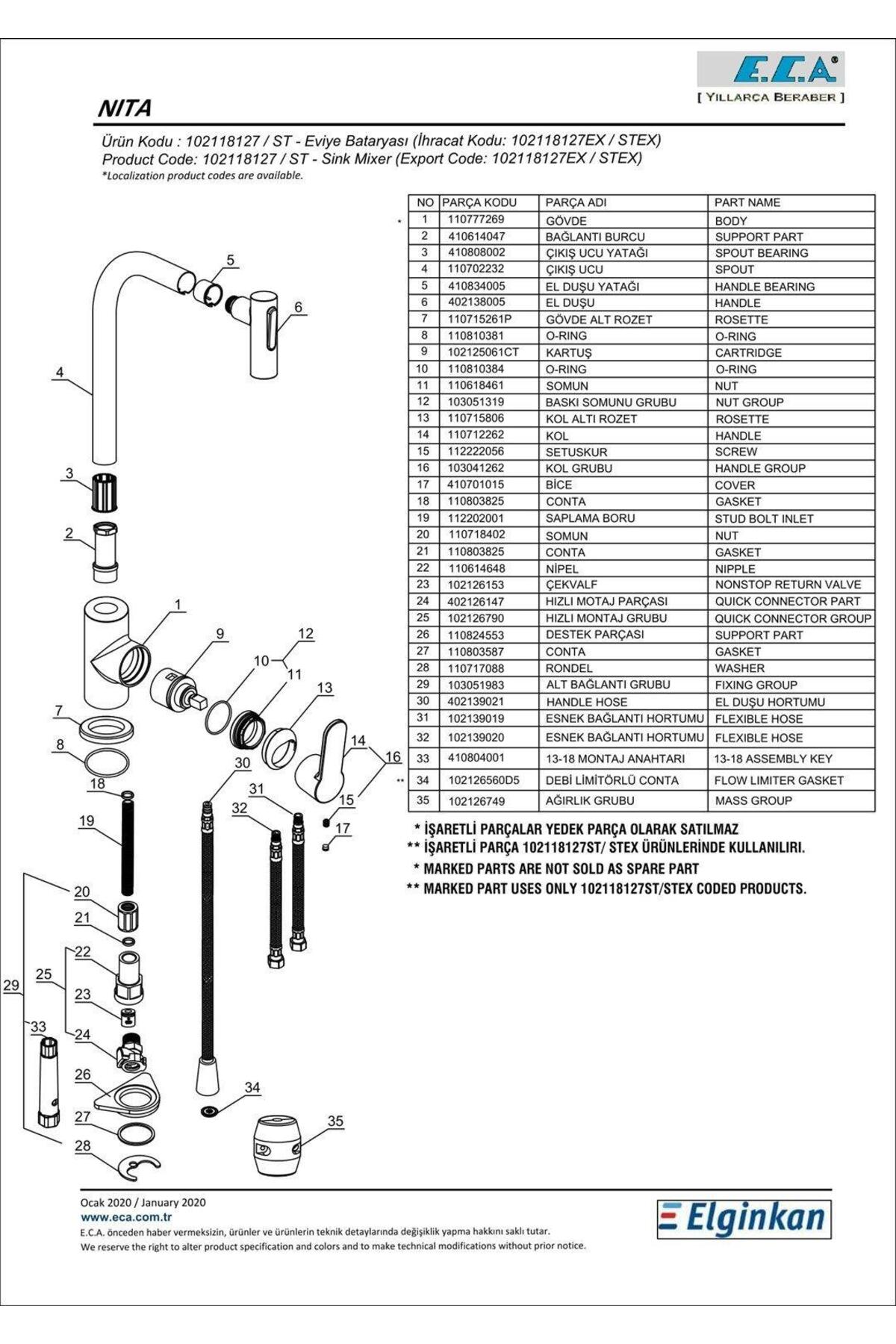 | * | NOT | : | 360º döner çıkış uçlu. T El Duşu |