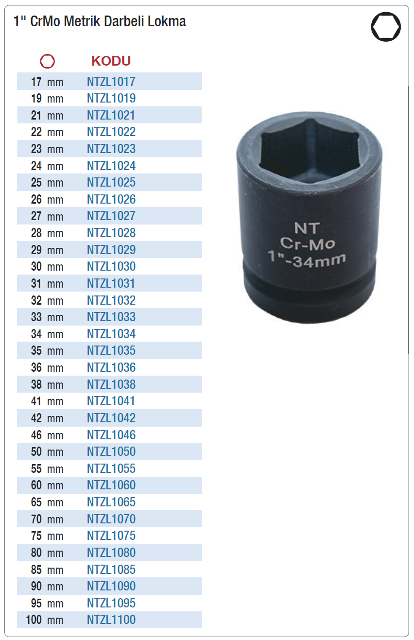 NTZL1038 38 mm 1’’ Crmo Metrik Darbeli Lokma