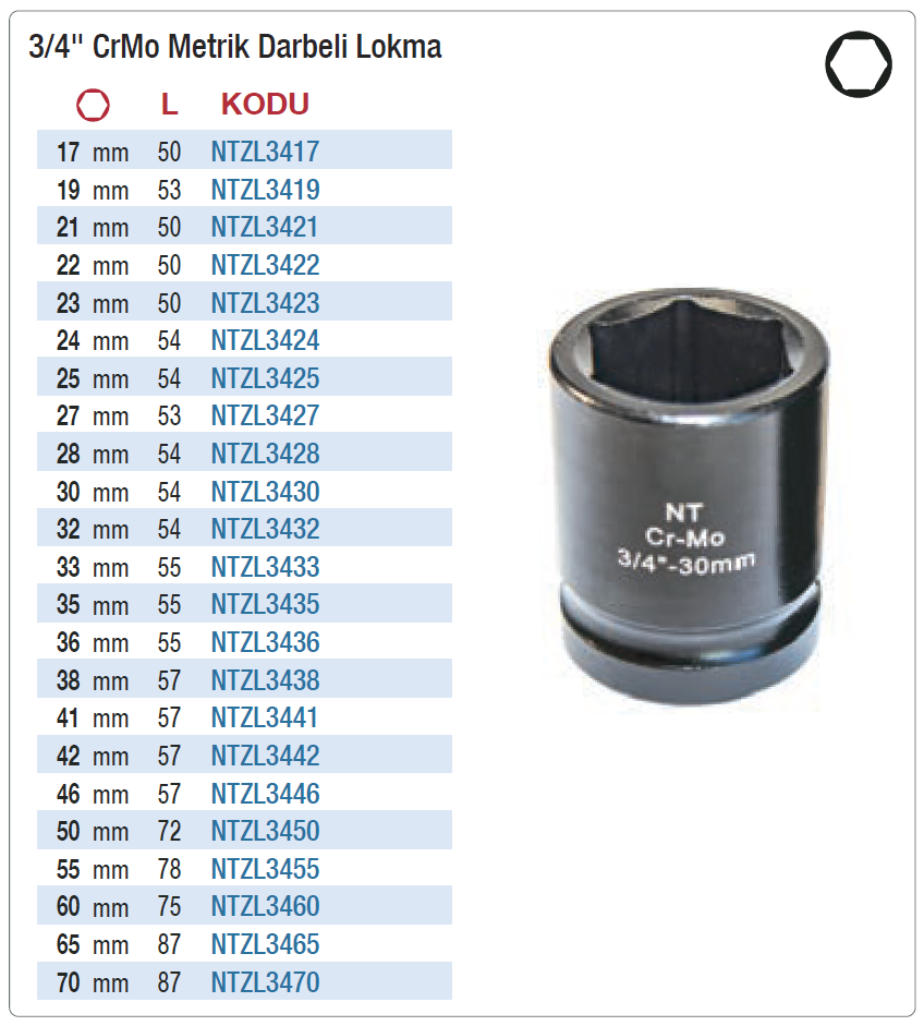 Nt Tools NTZL3436 36 mm 3/4’’ Crmo Metrik Darbeli Lokma