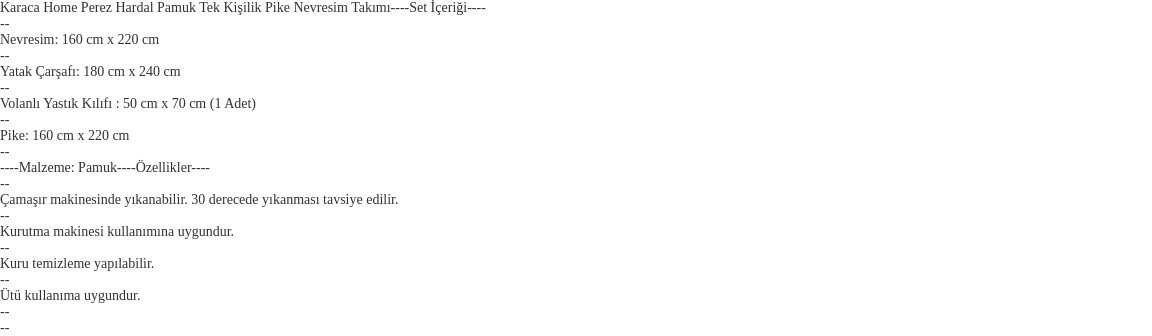 Perez Hardal Pamuk Tek Kişilik Pike Hediyeli Nevresim Takımı