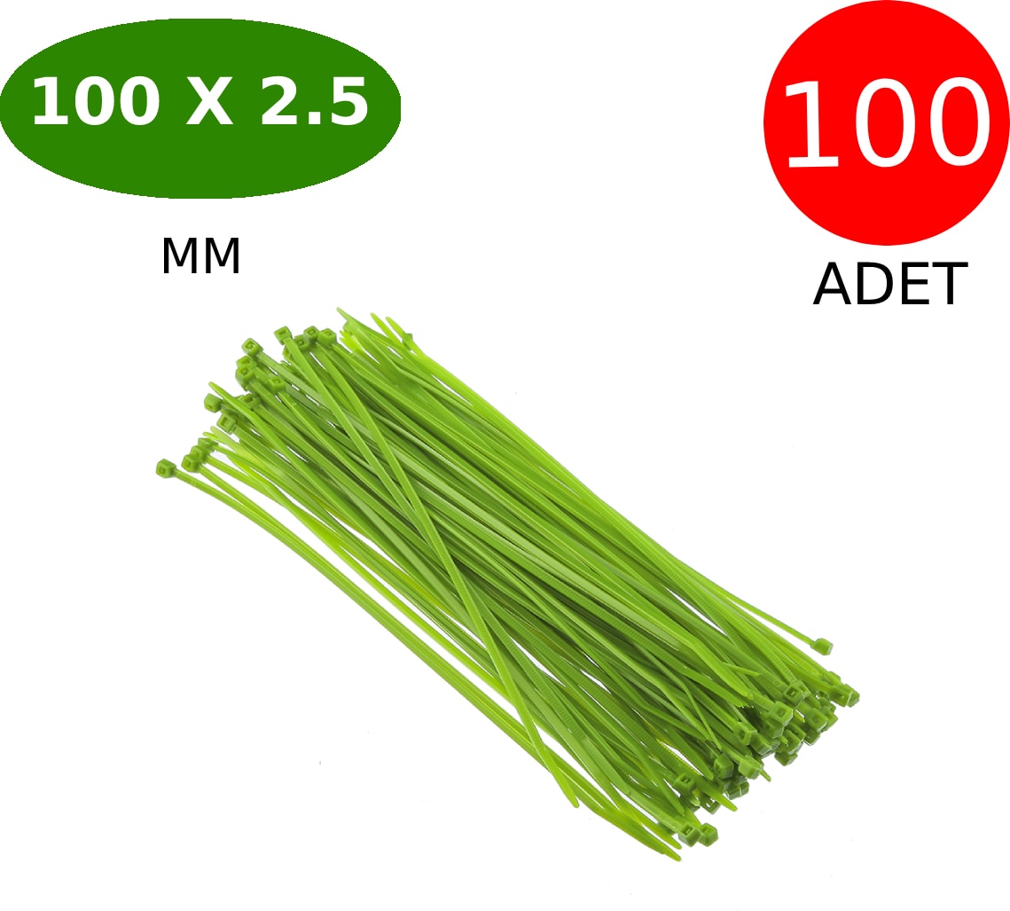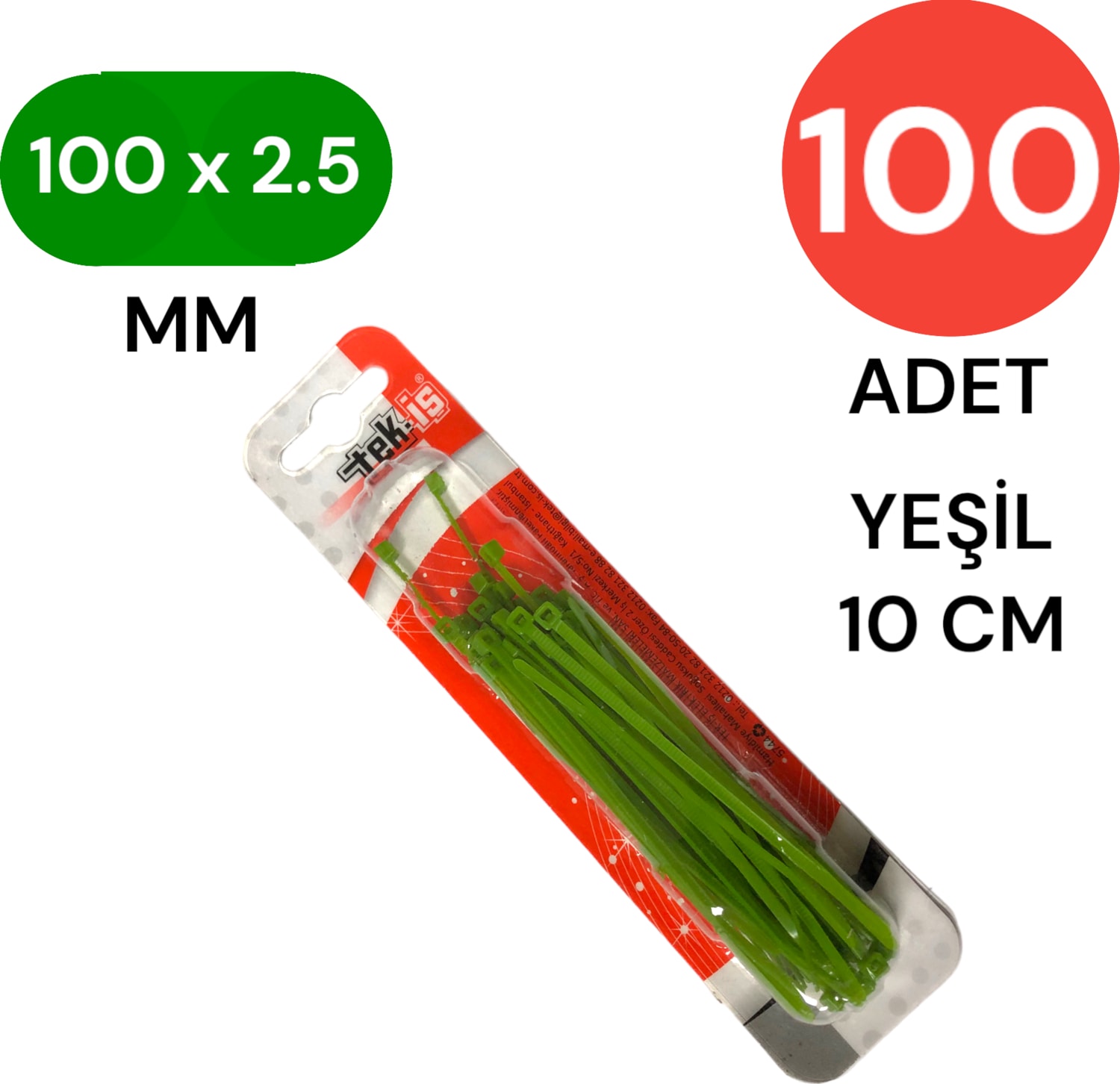 Tek-İş Plastik Kablo Bağı Cırt Kelepçe 100 mm x 2.5 mm Yeşil 100 Adet