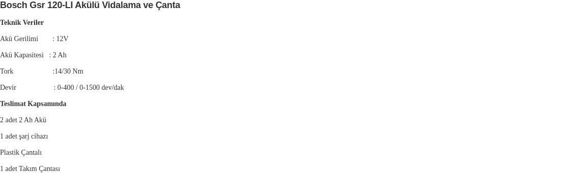BOSCH Professional GSR 120-LI 2x2.0Ah Çift Akülü Delme/Vidalama Makinesi - 06019G8000