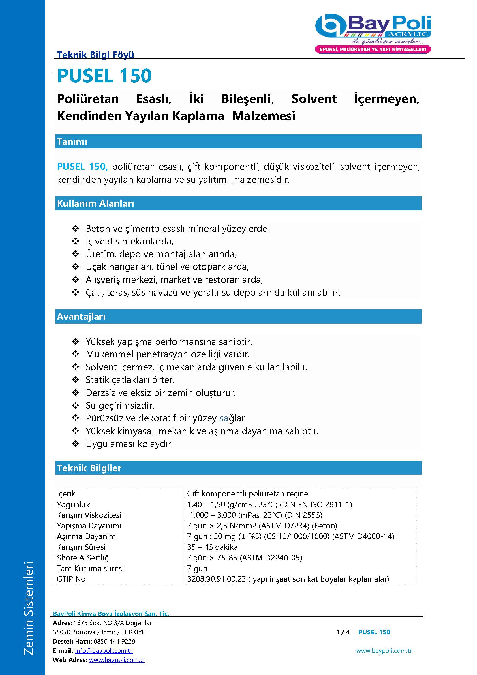 Pusel 150 Poliüretan Self Leveling 20kg - Ral 1000