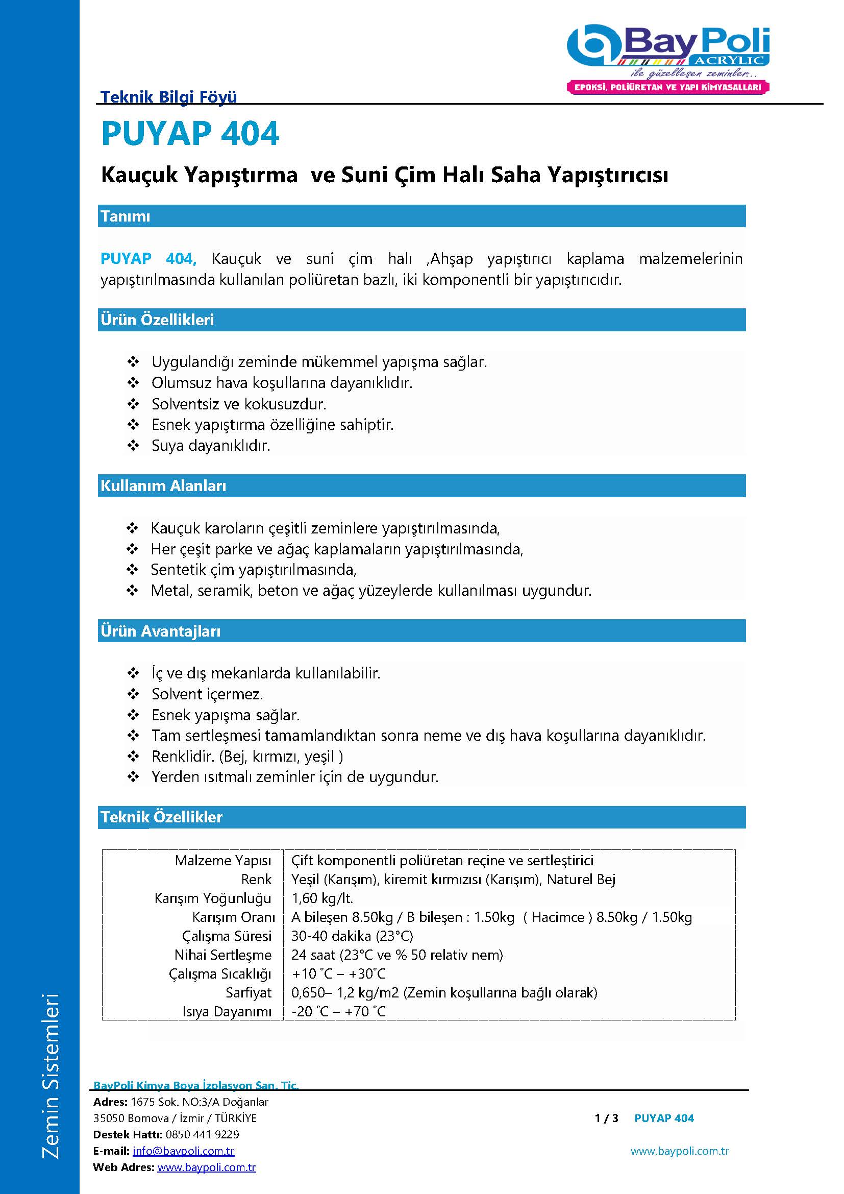 Puyap 404 Çift Bileşenli Parke,halı Kauçuk Poliüretan Yapıştırıcı 10 Kg - Yeşil