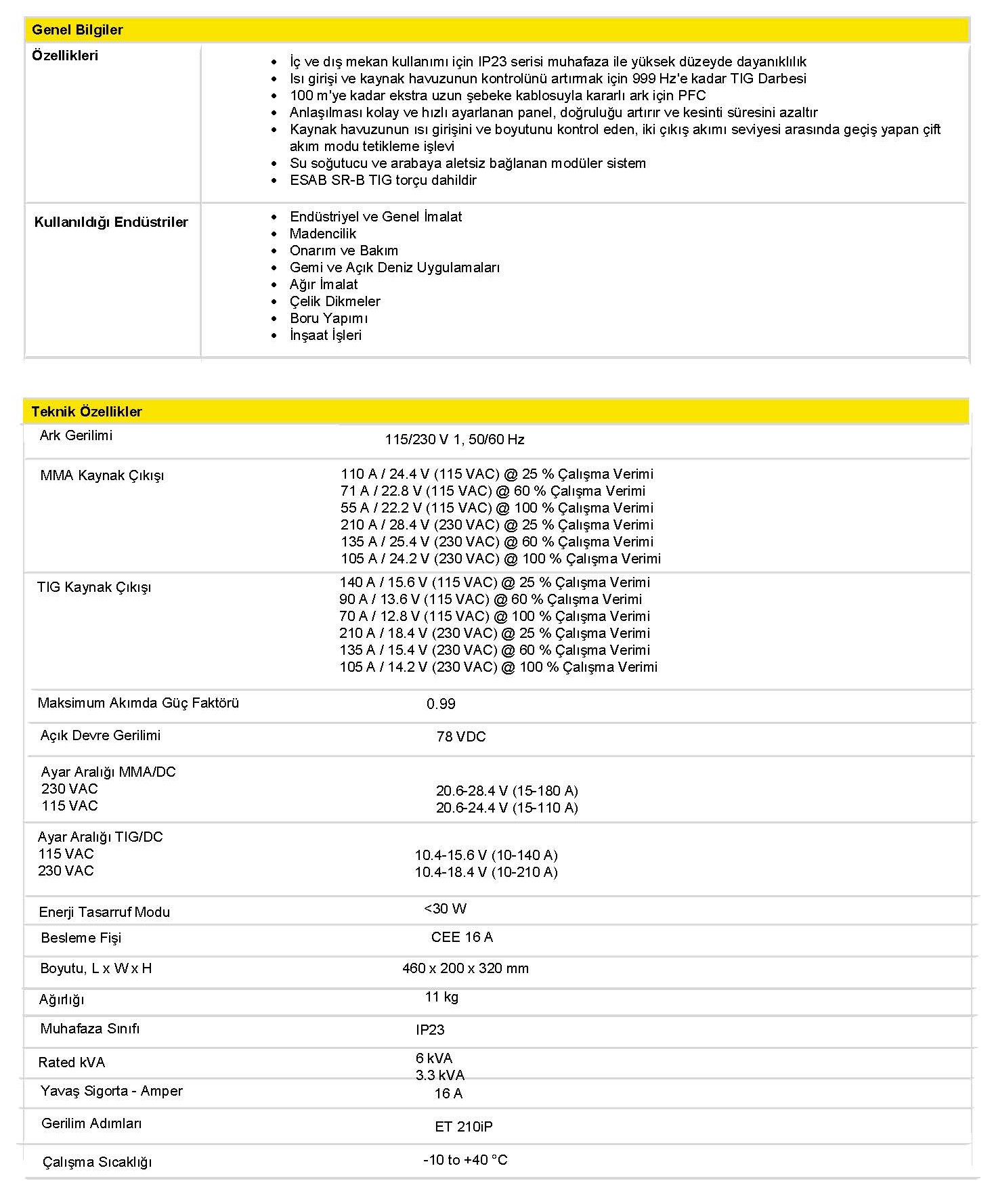 Renegade ET, zorlu ortamlarda kullanılmak üzere tasarlanmış dayanıklı IP23 muhafazaya sahip olan, profesyonel tek fazlı, yüksek frekanslı başlatmalı bir TIG ve MMA kaynak makinesidir. Birden fazla kaldırma noktasına sahip yüksek kaliteli taşıma kayışı ile donatılan Renegade, taşınması gerektiğinde sizinle birlikte hareket etmeye şimdiden hazır.Renegade ET, düşük kaliteli bir güç kaynağıyla ve çok uzun uzatma kablolarıyla (100 m'ye kadar) bile mükemmel şekilde çalışmasını sağlayan yerleşik ve aktif bir PFC devresine sahiptir.Bu seride üstün kaynak kalitesi önceliklidir, ayrıca basit ve sezgisel kullanıcı arayüzündeki geniş parametre seçimine doğrudan erişimle desteklenir ve makine ile çalışmayı oldukça kolaylaştırır.