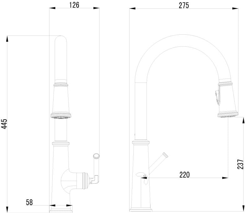 Retro mutfak armatürü Nikel Renk ( 2 Fonksiyonlu Sprey Başlık)