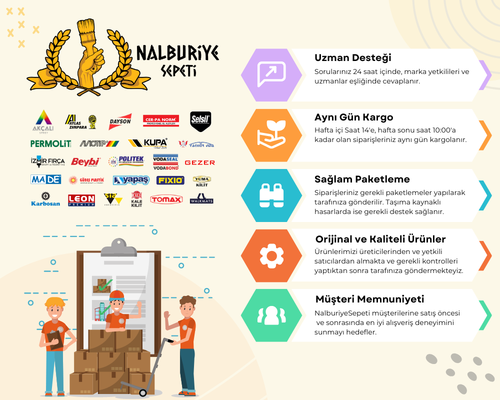 | Yüzey Kuruması | 15-60dk (23°C ve 50% R.H.) (ASTM C679) |