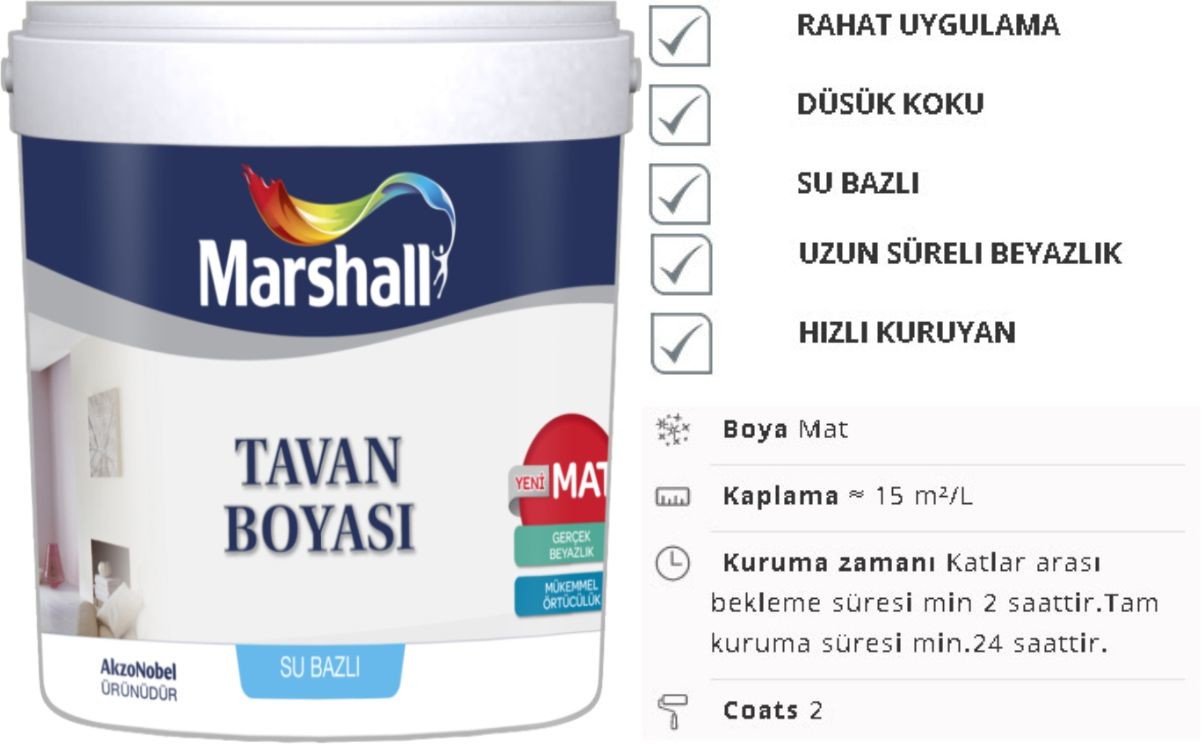 TAVAN BOYASI 6LT=10KG-Mükemmel Beyazlık-Ekstra Örtücülük-Nefes Alabilme-Kolay Uygulama