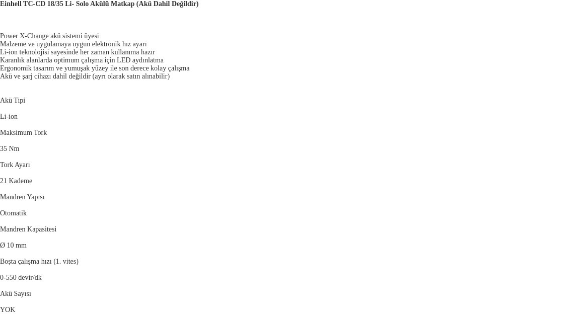 EİNHELL TC-CD 18/35 Li - Solo, Akülü Matkap