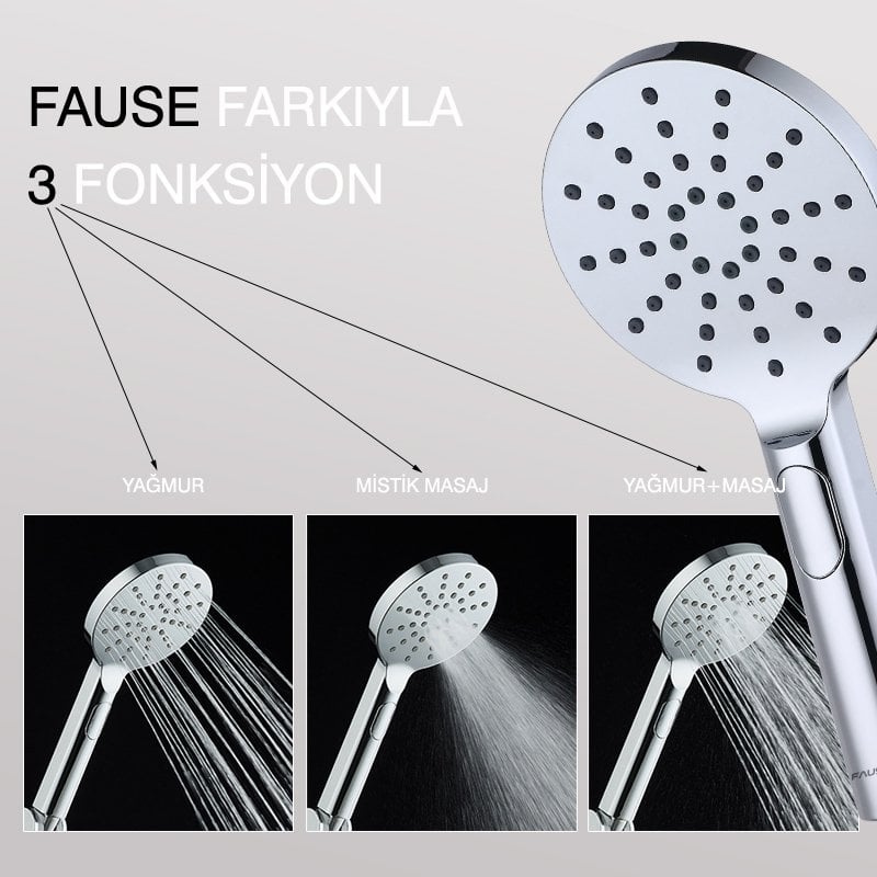 Butonlu, 3 fonksiyonlu, masaj etkili, ABS üzeri komple krom kaplama el duş başlığı