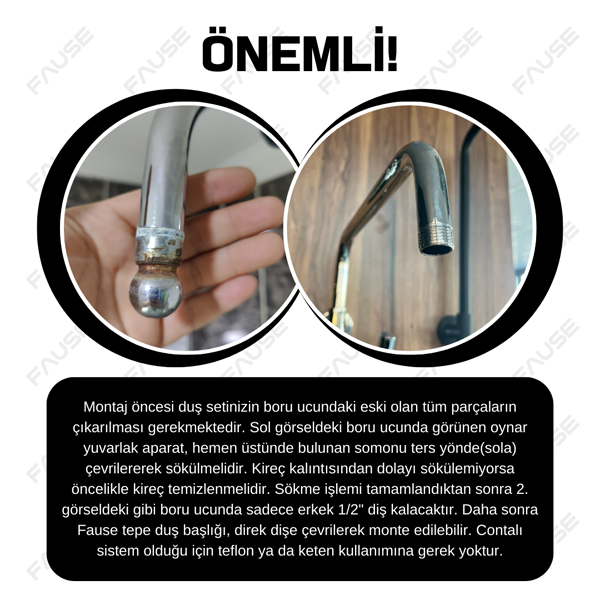 Ankastre duş başlığı borusu ile ankastre olarak kullanılabilir.