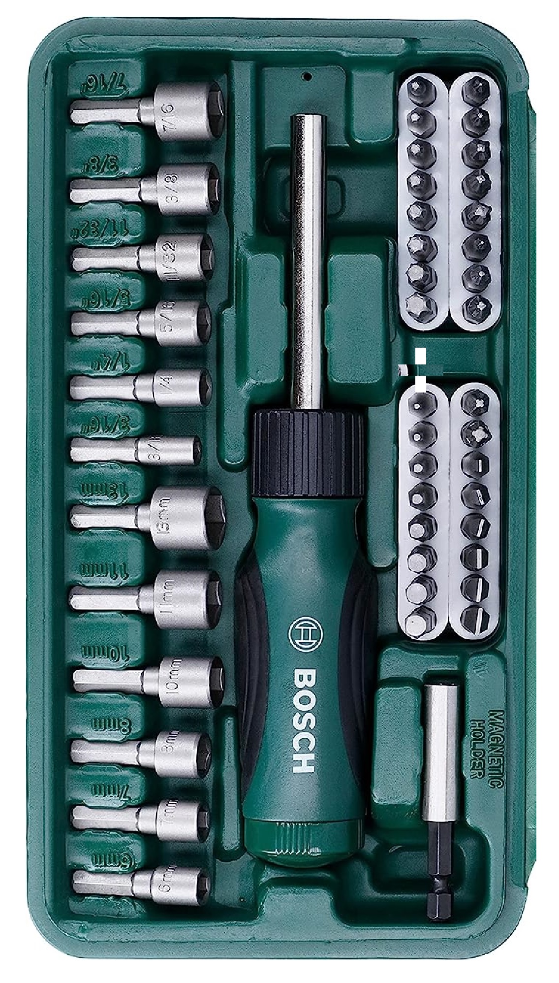3/16", 1/4", 5/16", 11/32", 3/8", 7/16", 6, 7, 8, 10, 11, 13 mm