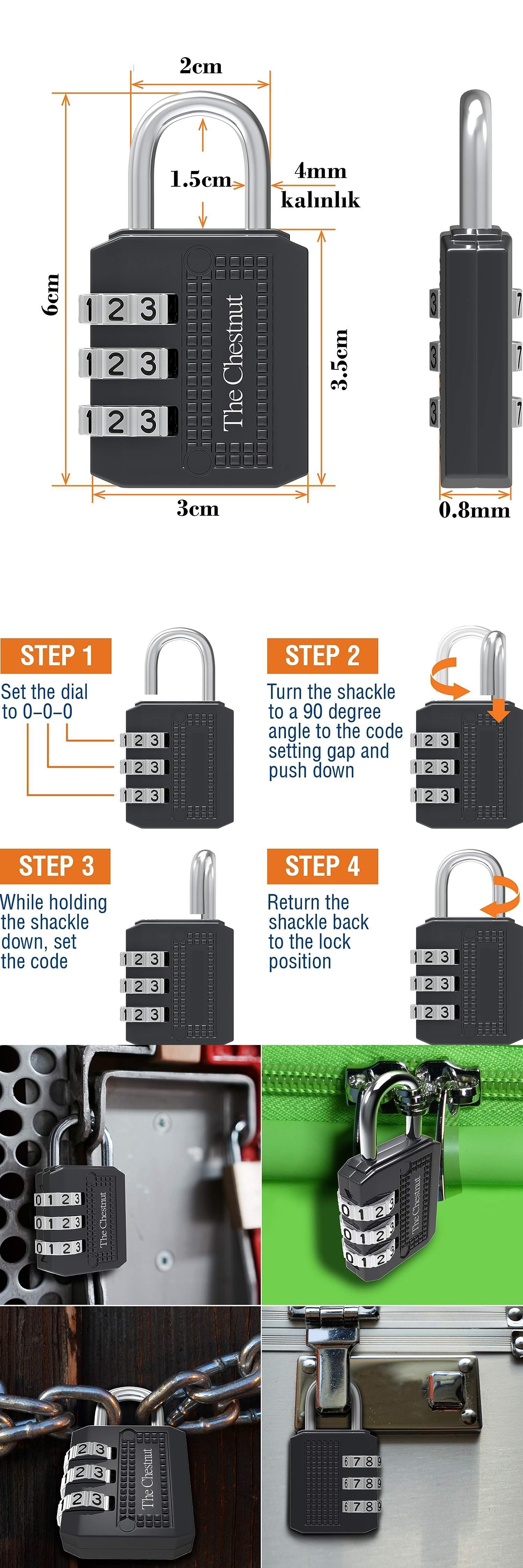 * Kullanım: Şifreyi girin, kolu çekerek kilidi açın. Kullanımdan sonra şifreyi karıştırarak kilidi güvenli hale getirin.