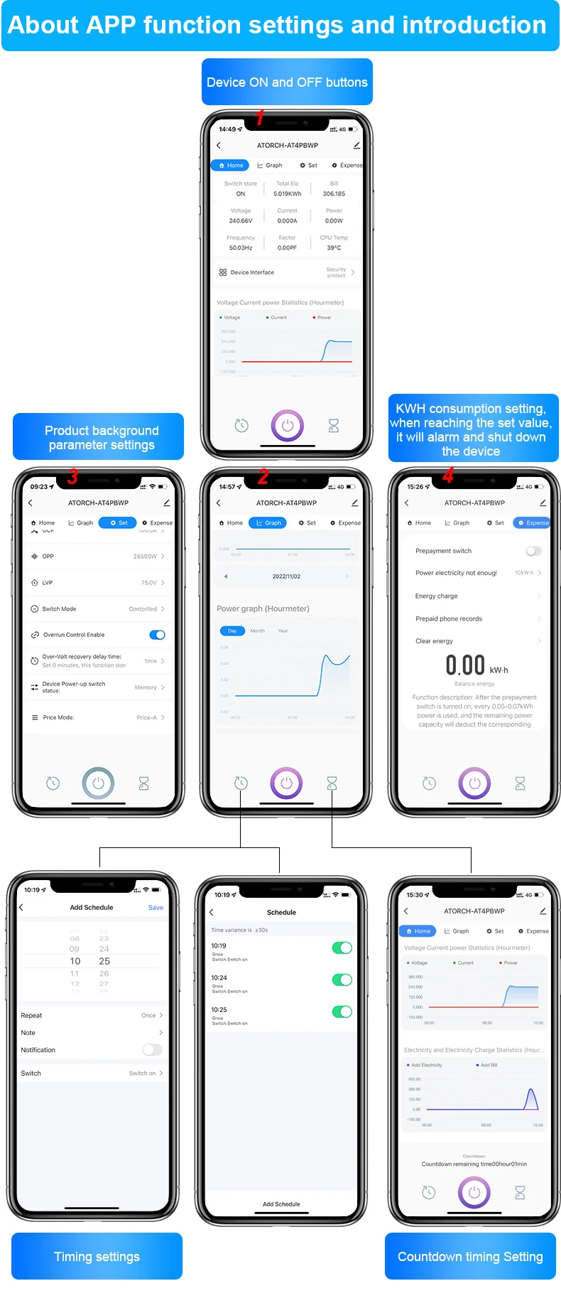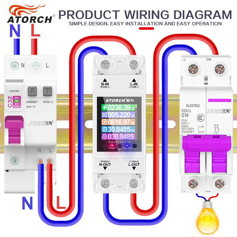 5.LCD ekran, Gerilim, Akım, Güç, toplam Enerji kWh'nin gerçek zamanlı gösterimi