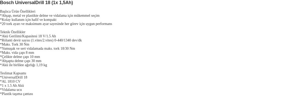 BOSCH Universaldrill 18 Tek Akülü Delme/vidalama Makinesi 1,5ah - 06039c8004