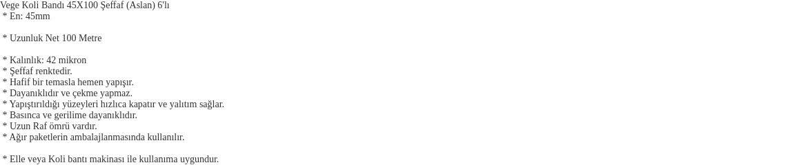 Ve-ge Aslan Koli Bandı 45x100 Mt 6 Adet